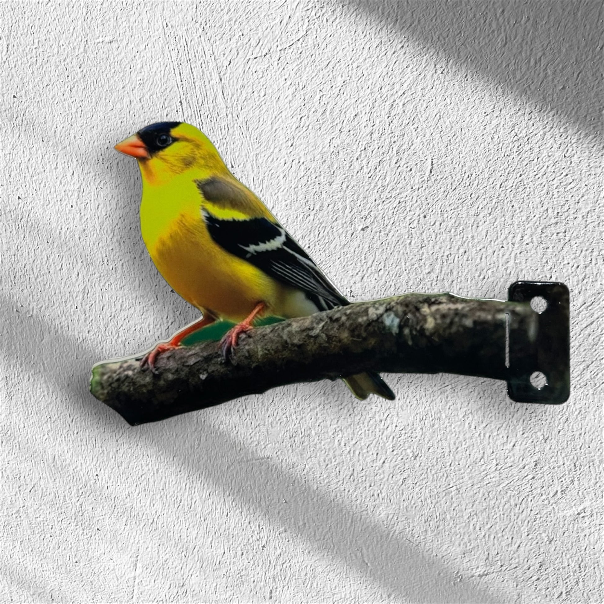 Expertly crafted of durable steel, the American Goldfinch tree/post mount art adds a touch of natural beauty to any outdoor space. With its intricate design and quality material, this art piece is sure to delight bird lovers and elevate the aesthetic of your home's exterior.
