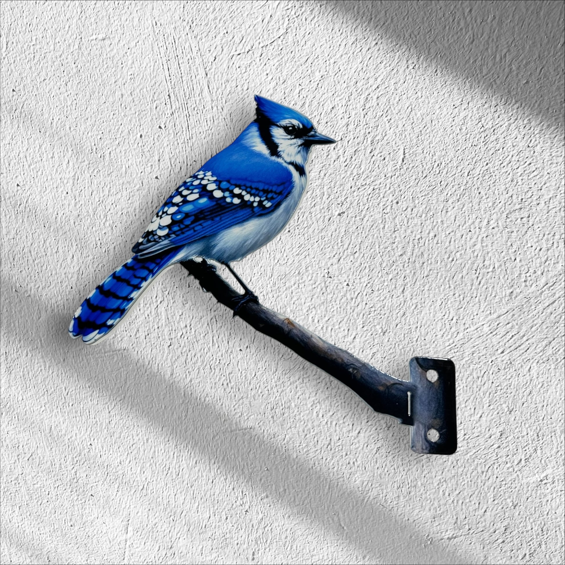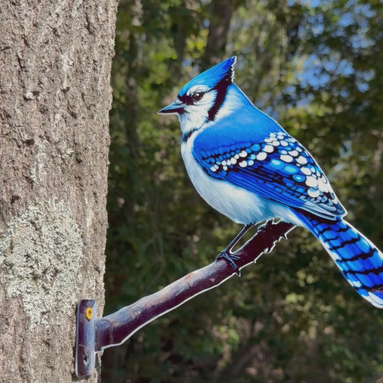 This Blue Jay tree/post mount is expertly crafted from durable steel. Enjoy the beauty and charm of a Blue Jay with the convenience and versatility of a mountable design. Perfect for adding a touch of nature to any tree or post in your yard.