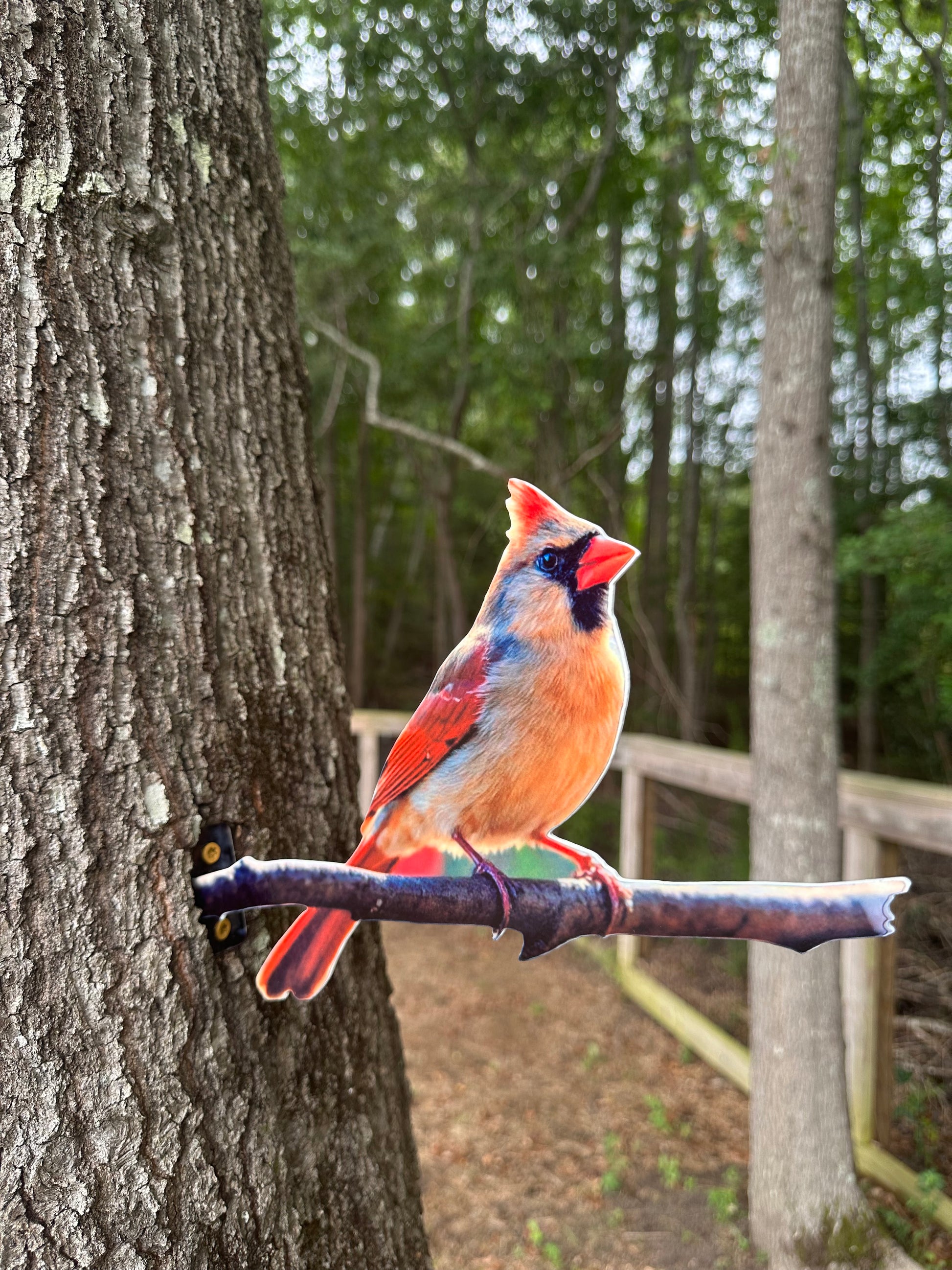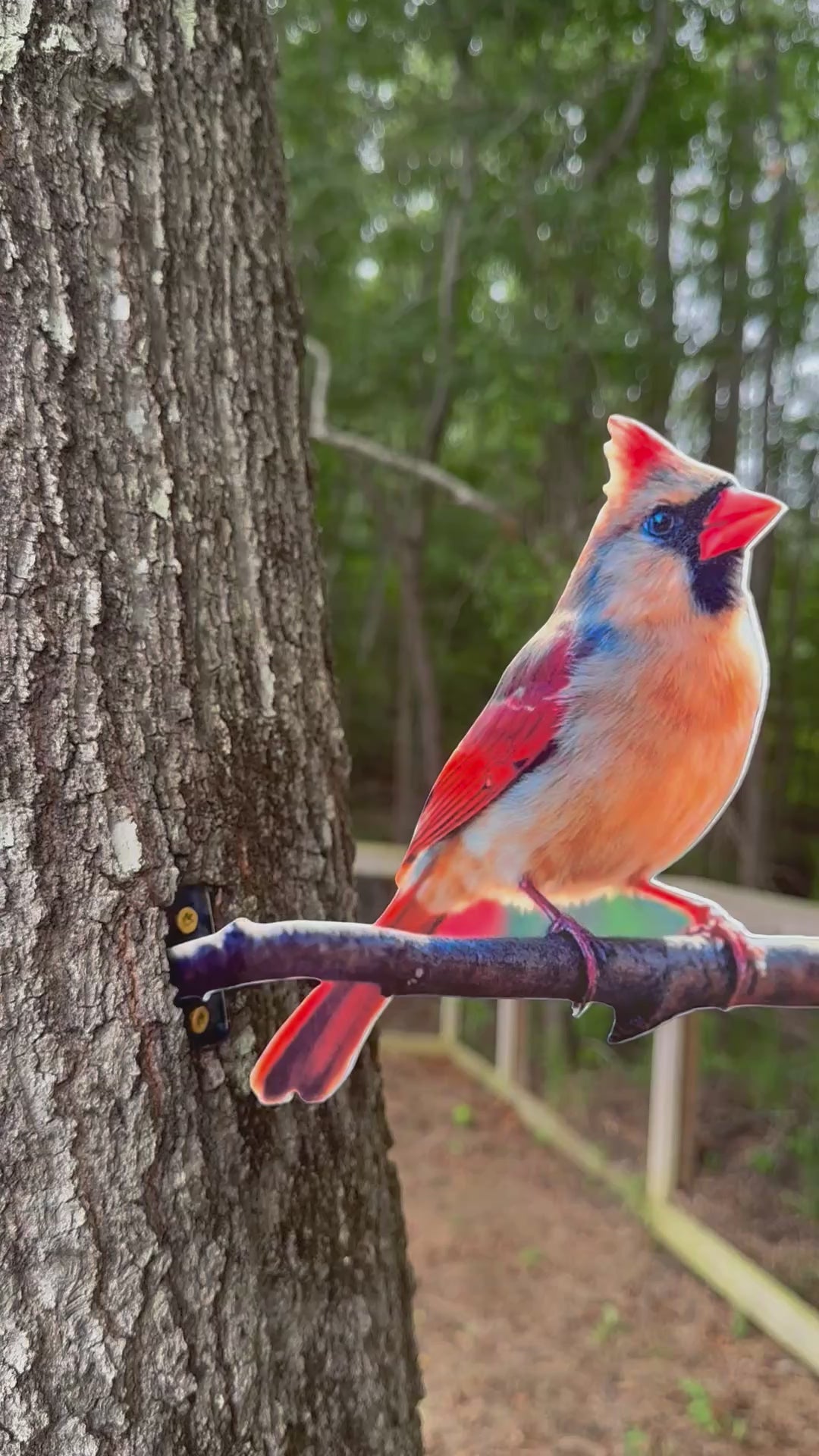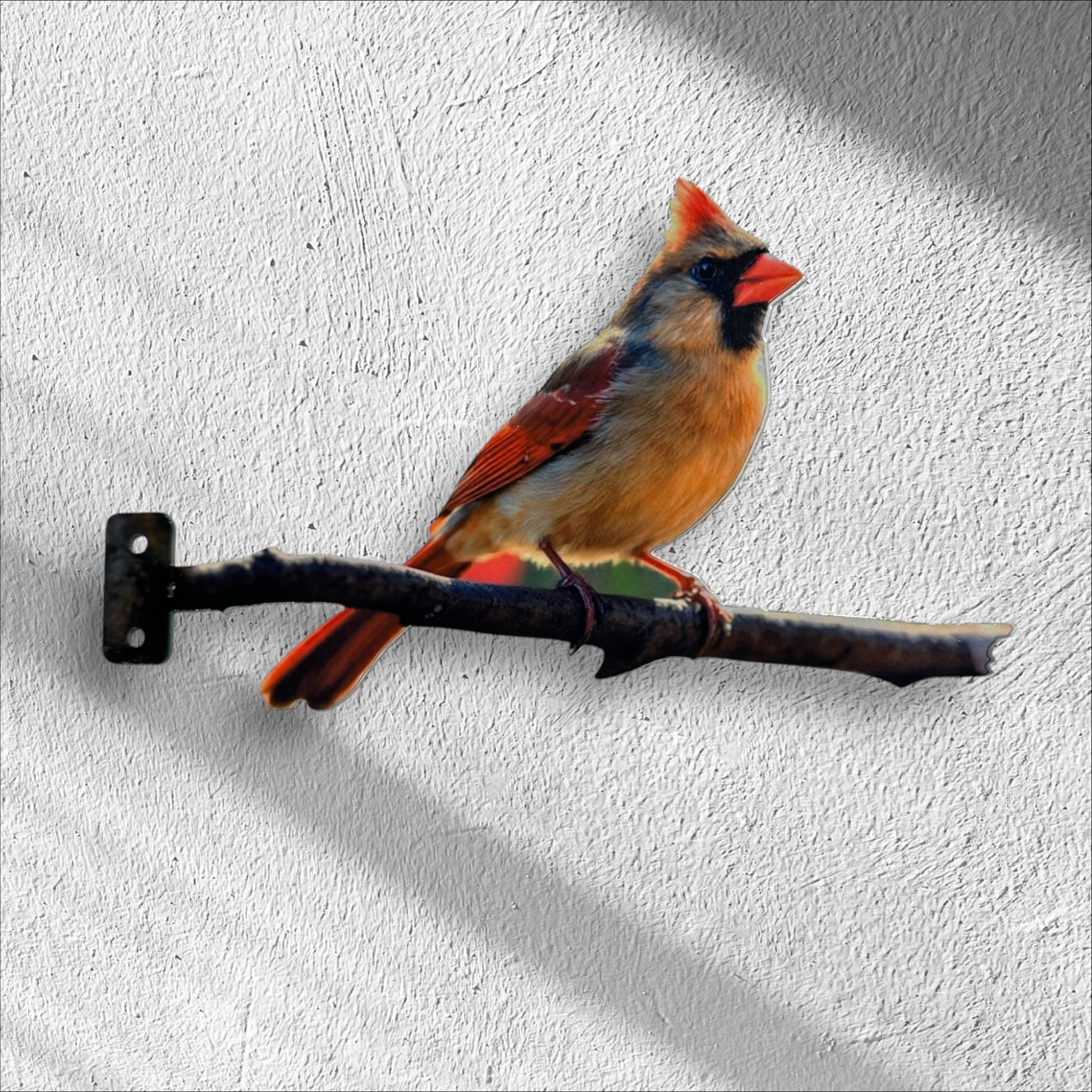 This female cardinal tree mount art is expertly crafted from steel, ensuring durability and a beautiful addition to any outdoor space. The intricate design captures the essence of a female cardinal, bringing a touch of nature and elegance to your home. Enhance your surroundings with this stunning piece.