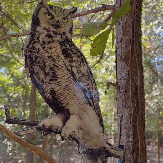 This realistic looking great horned owl is made of metal and can be easily mounted on any tree or post. Keep unwanted birds and pests away from your property with this eye-catching and effective owl decoy. Protect your garden, yard, and home with the help of this majestic bird.
