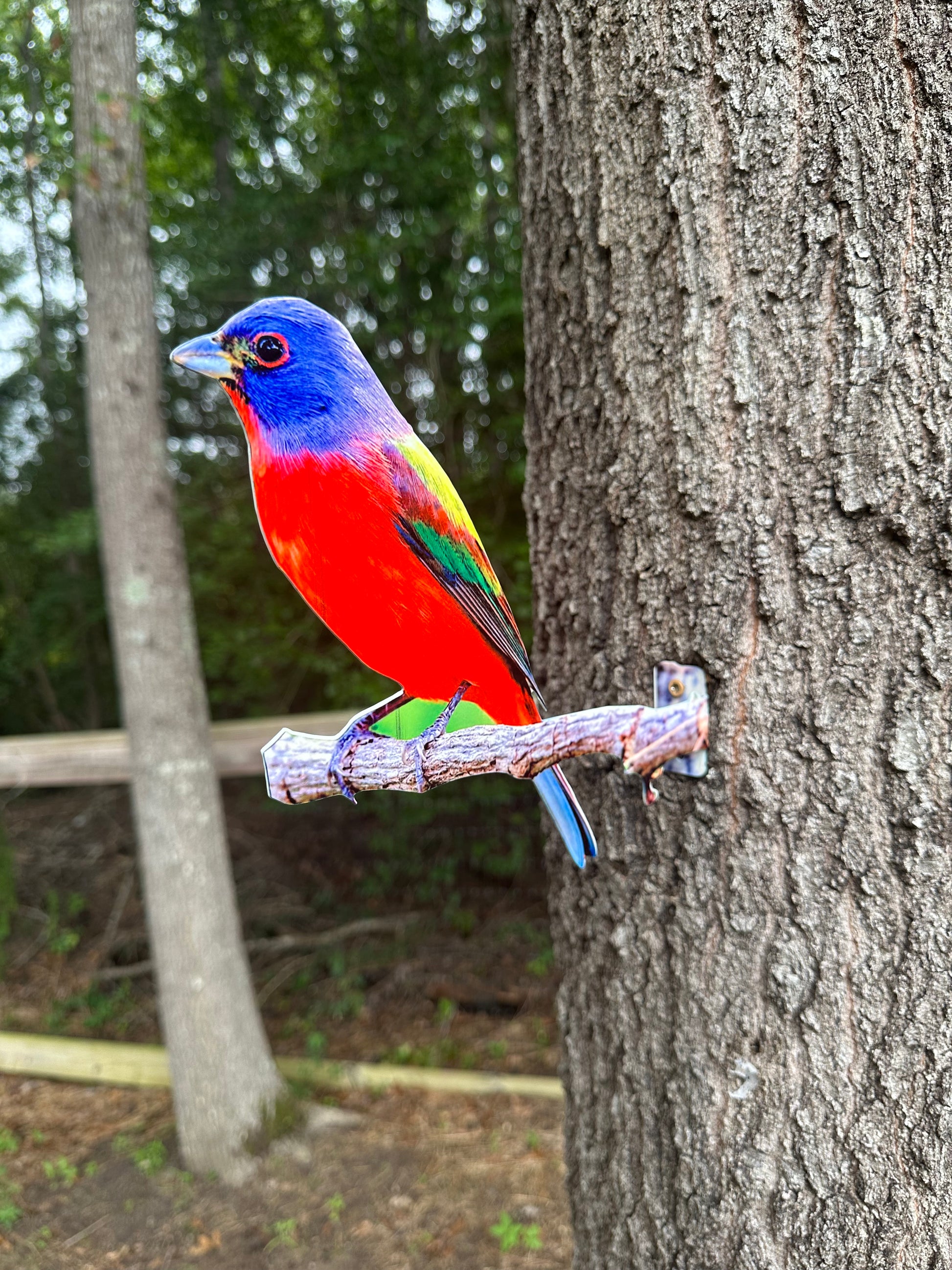 Add a touch of nature to your home with our Steel Painted Bunting Tree Art. Made with high-quality steel, this vibrant piece will bring life and color to your backyard . Perfect for nature/bird lovers and art enthusiasts alike.