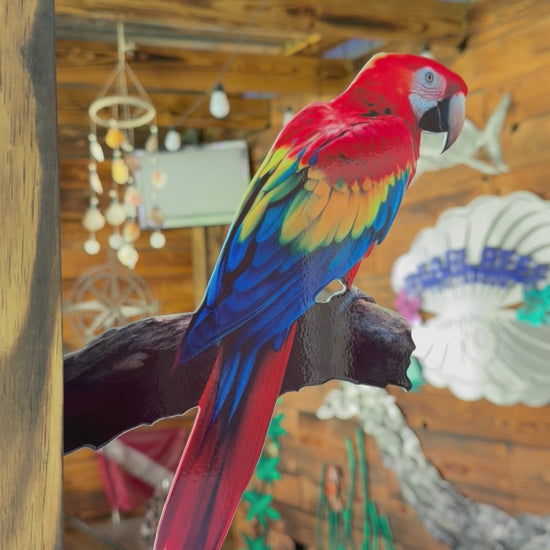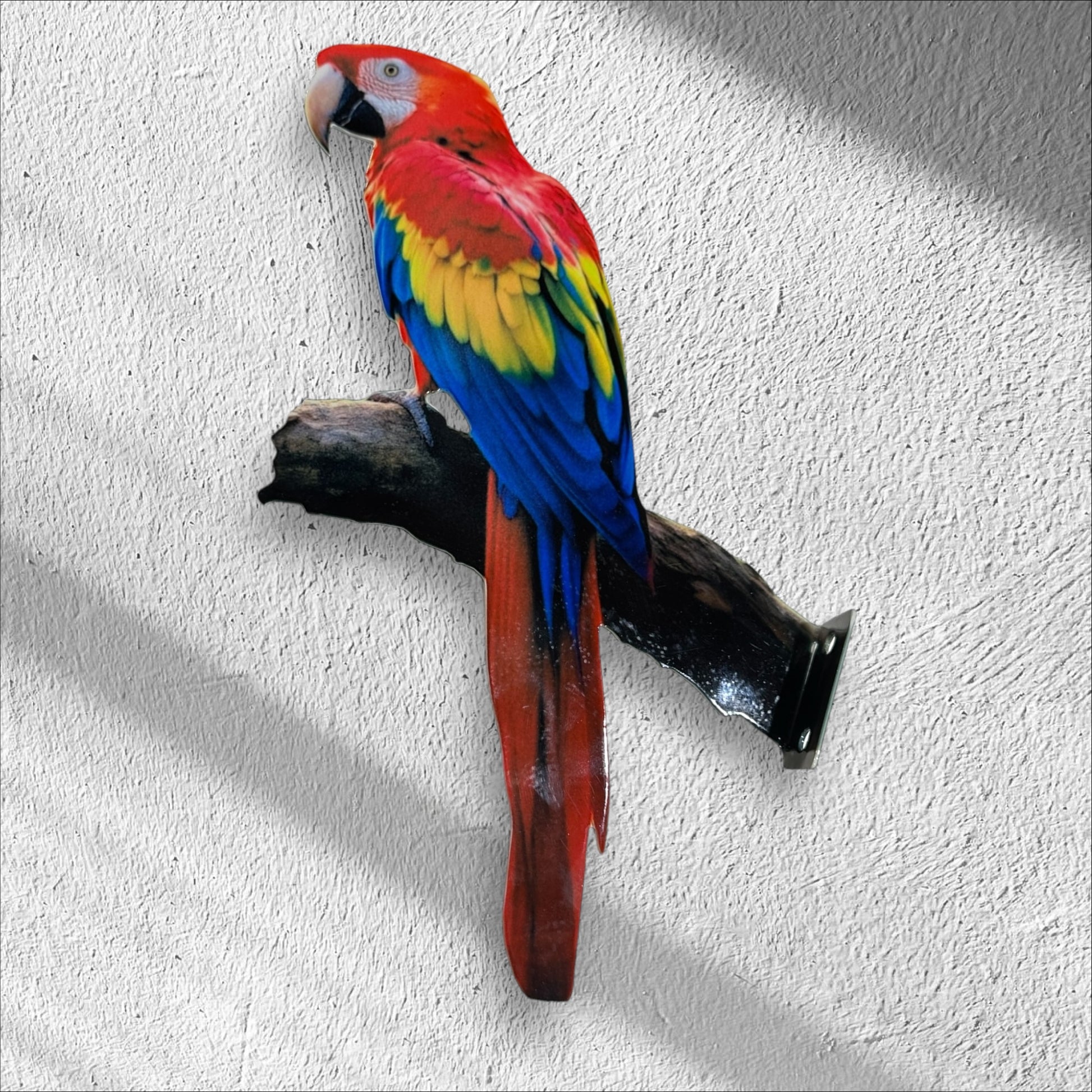 The Scarlet Macaw is a sturdy and durable bird sculpture, made from high-quality steel. With its easy mounting feature, it can be easily displayed on any tree or post. Enhance your outdoor decor with this beautiful and unique piece.